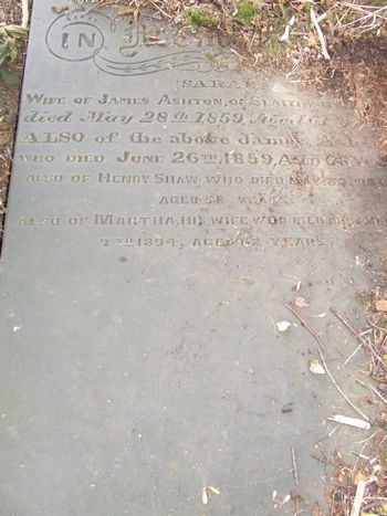 Memory of Sarah wife of James Ashton of Slaithwaite who died May 28th