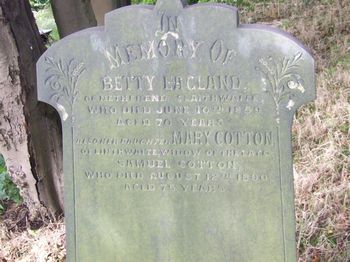 1859 aged 70 years Also her daughter Mary Cotton of Linthwaite widow of the late Samuel Cotton who died August 12th 1890 aged 75 years |