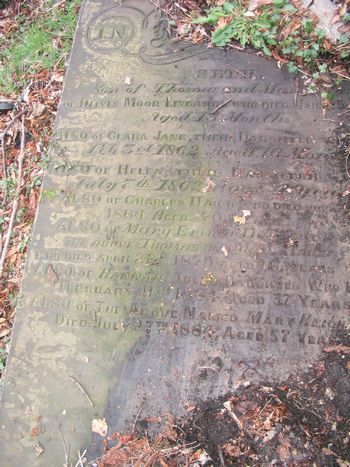 1857 aged 13 months. Also of Clara Jane their daughter who died February 3rd 1862 aged 16 months. Also Ellen their daughter who